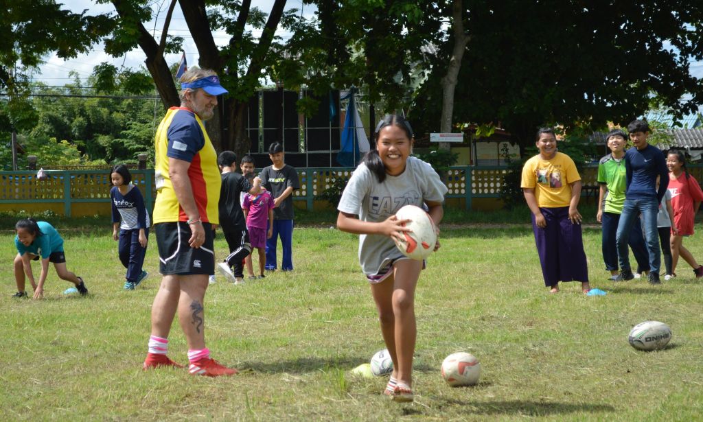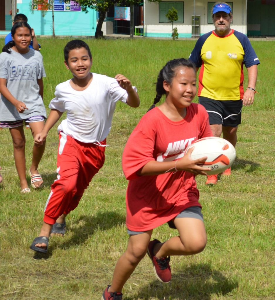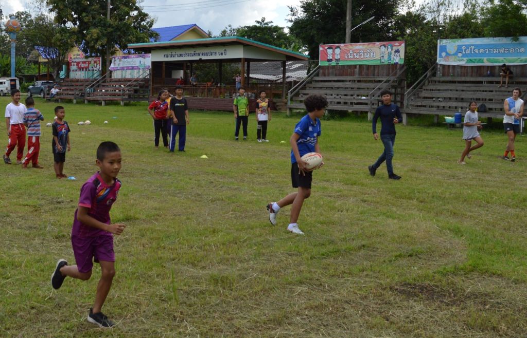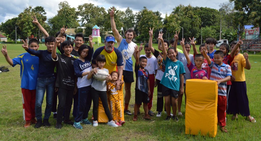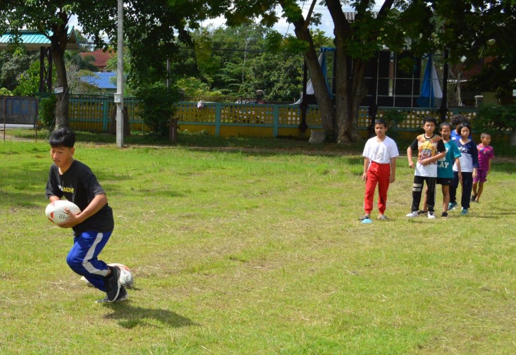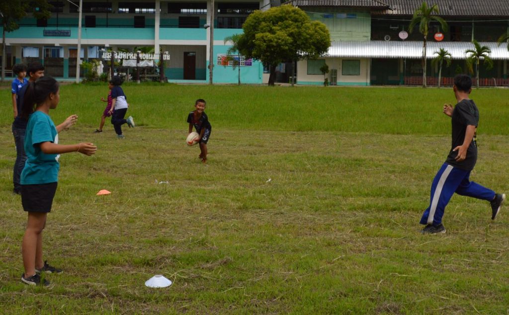 Bright blue skies and sunshine lit up the Sankhampeng Kanta Anusorn School, home ground of the Lanna Lions Rugby Club, for the latest edition of the Lanna Rugby Club’s youth development program with over 25 kids, many of them new faces, turning out for another session of their continuing rugby education.