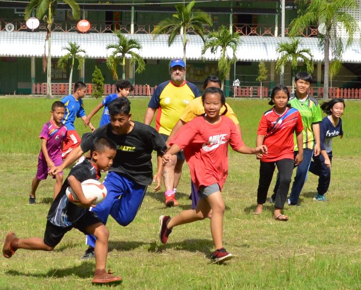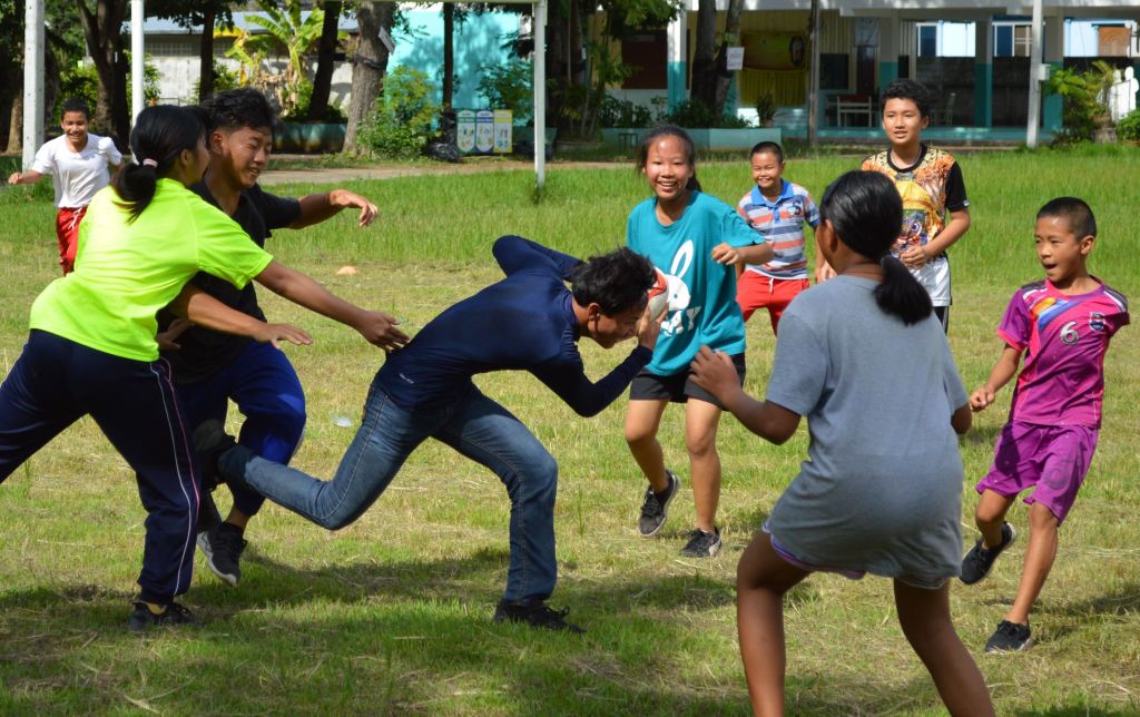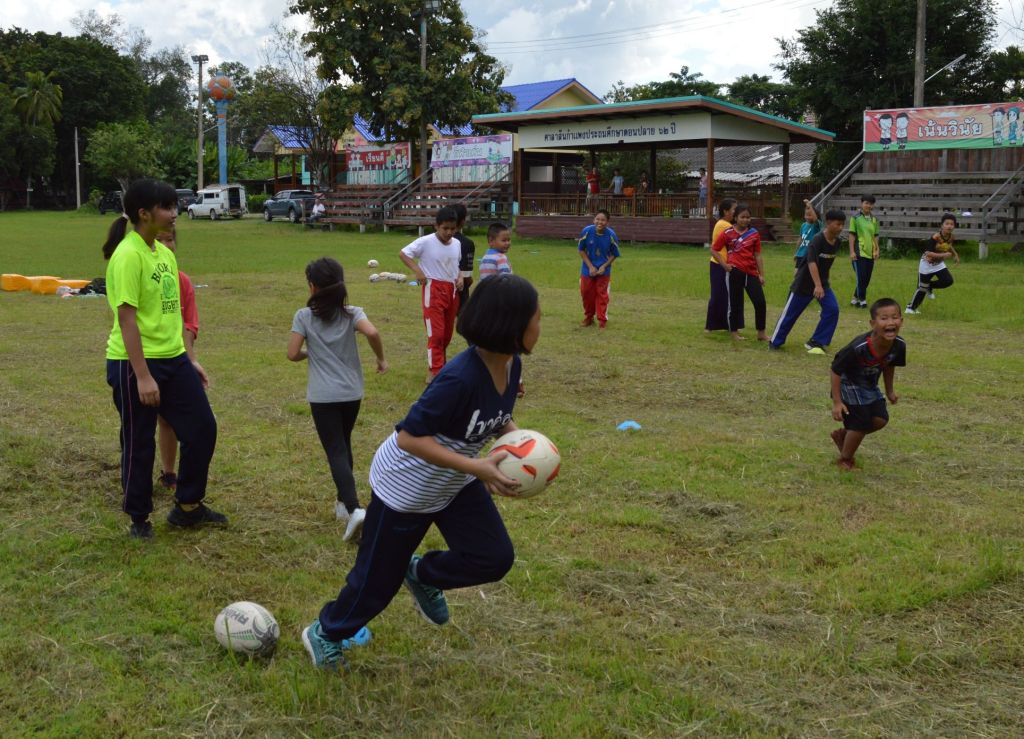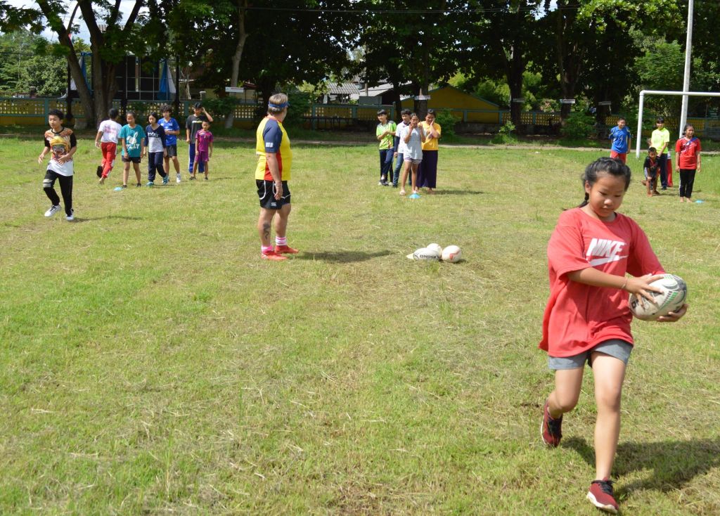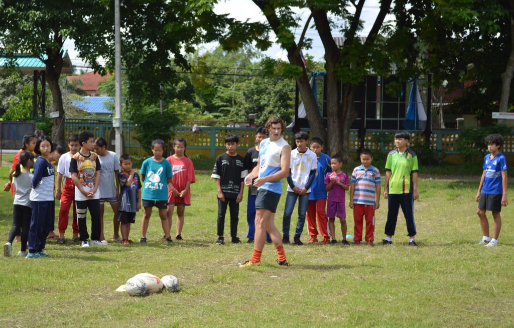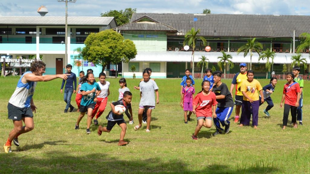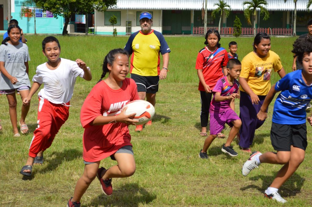 Bright blue skies and sunshine lit up the Sankhampeng Kanta Anusorn School, home ground of the Lanna Lions Rugby Club, for the latest edition of the Lanna Rugby Club’s youth development program with over 25 kids, many of them new faces, turning out for another session of their continuing rugby education.