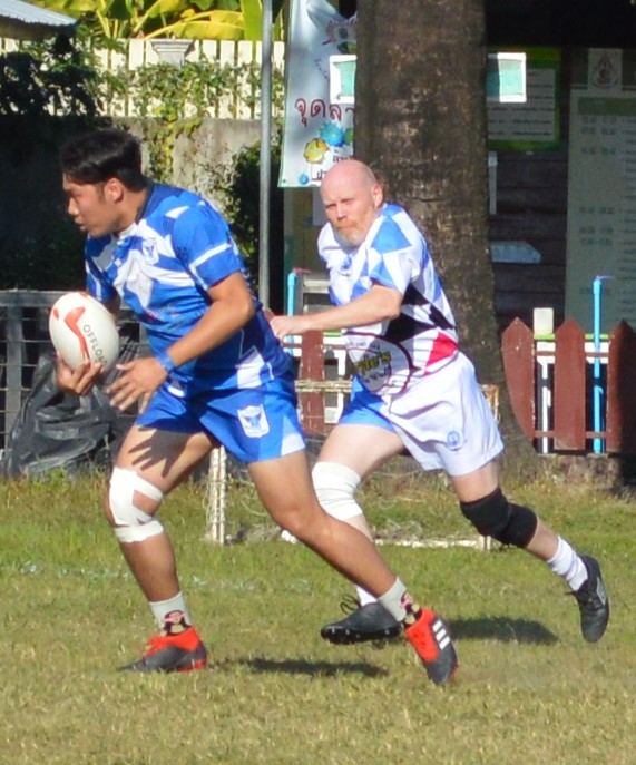 Lanna Rugby Club applied all their guile and experience as the game commenced and worked their way back into it as they gained more possession and, with Brave and Paul Bolwell leading the charge in the forwards, the backs finally started to make inroads into the Payap half. Lanna new boy Carlos Victor Da Silva was impressive in defense and attack and with Brian Grieve charging at the line and creating space Dtun finally found open ground and raced into Payap territory, feeding the ball to Louis Stanton who broke through and sucked in two defenders before offloading to Da Silva, who got the ball back to Dtun who sped away to score and bring Lanna back into the game. Lanna were back in it and although they created a couple more chances they were held up by resolute Payap defense, as ref Wittaya Jumnongsub whistled for the break with the game still in the balance at 15-5.