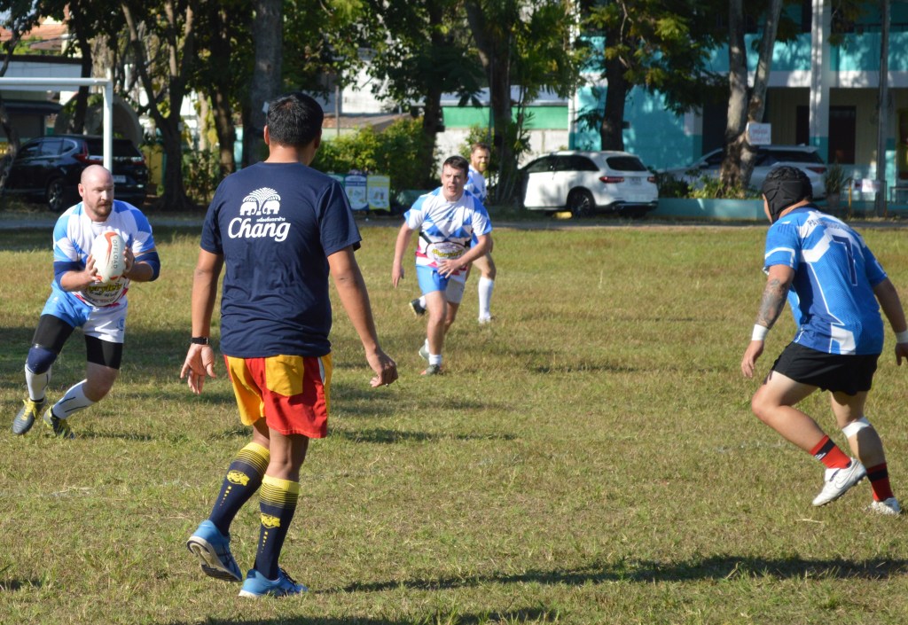 All these questions and more were about to be answered as the teams lined up for the kick-off. With Lanna captain Dave McRitchie winning the toss and deciding to receive, Payap kicked off and immediately showed their intent by switching and kicking deep to the backs. Their speedier players were straight in the face of the Lanna team and pressured Lanna into making mistakes which gave them the advantage. It was obvious, having learned from their previous losses to Lanna, that they had a plan to take the game to them which was, fast ball from the breakdown out to the backs, crash it up in midfield, quick recycle, out again and score. The strategy worked and Lanna were shell shocked with balls being knocked on, passes going to ground and tackles being missed and, having no time to settle into their rhythm, were in some disarray as Sitthichai Deechan (Big) went in for the first try. A serious knee injury to Tom Stubley leading to his leaving the pitch was a big blow to Lanna. Things went from bad to worse as Payap old boy and hard running centre, Thanachot Aomsilapa (Tle) went in for two tries to give Payap a commanding lead 15-0 at the break.
