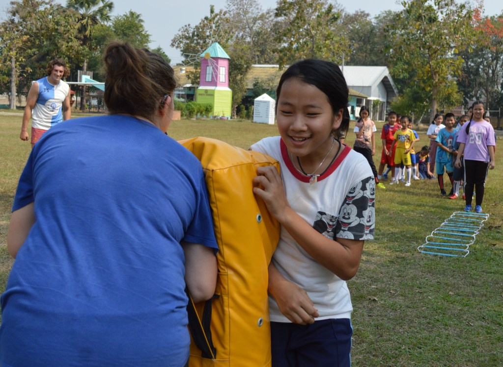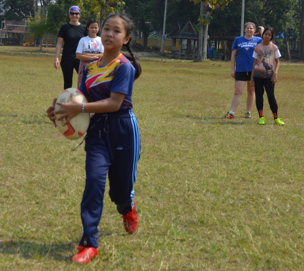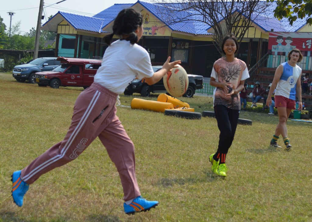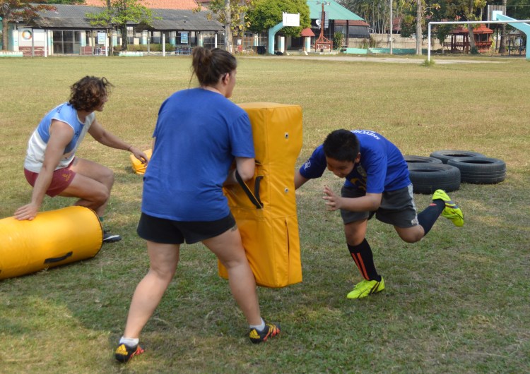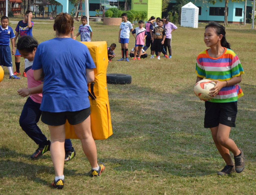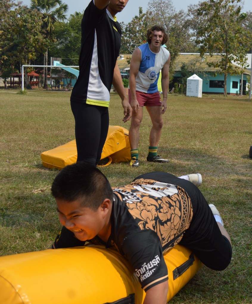 With Erin and Eileentjie who are the beginnings of the Lanna Rugby Clubs Ladies team coming down to give Tom a helping hand, along with Dtun, he had plenty of cannon fodder for the contact drills that followed.