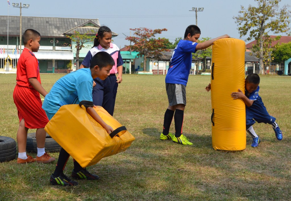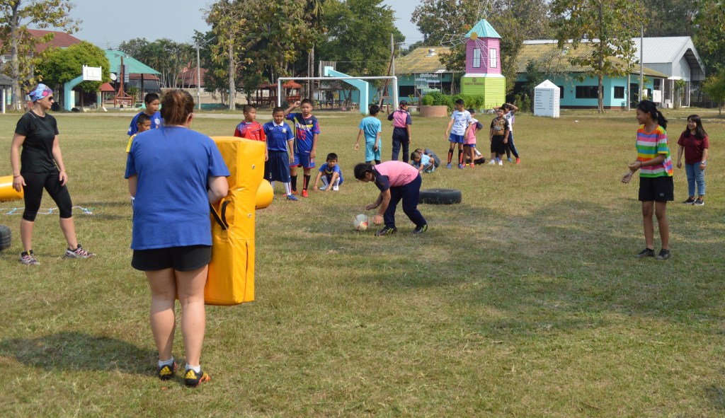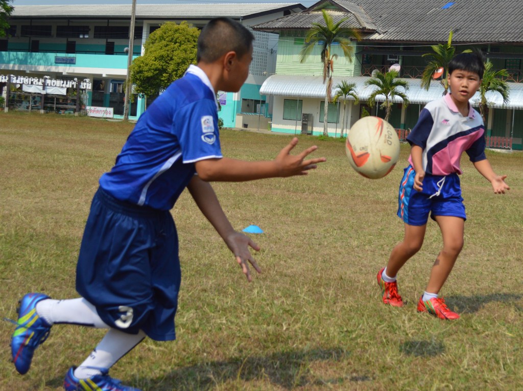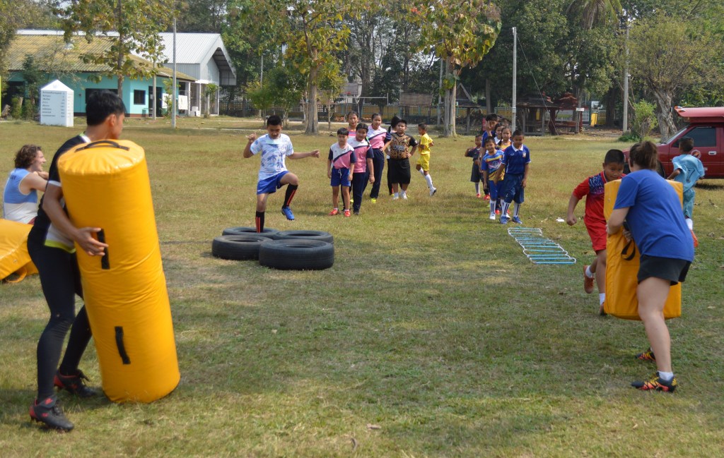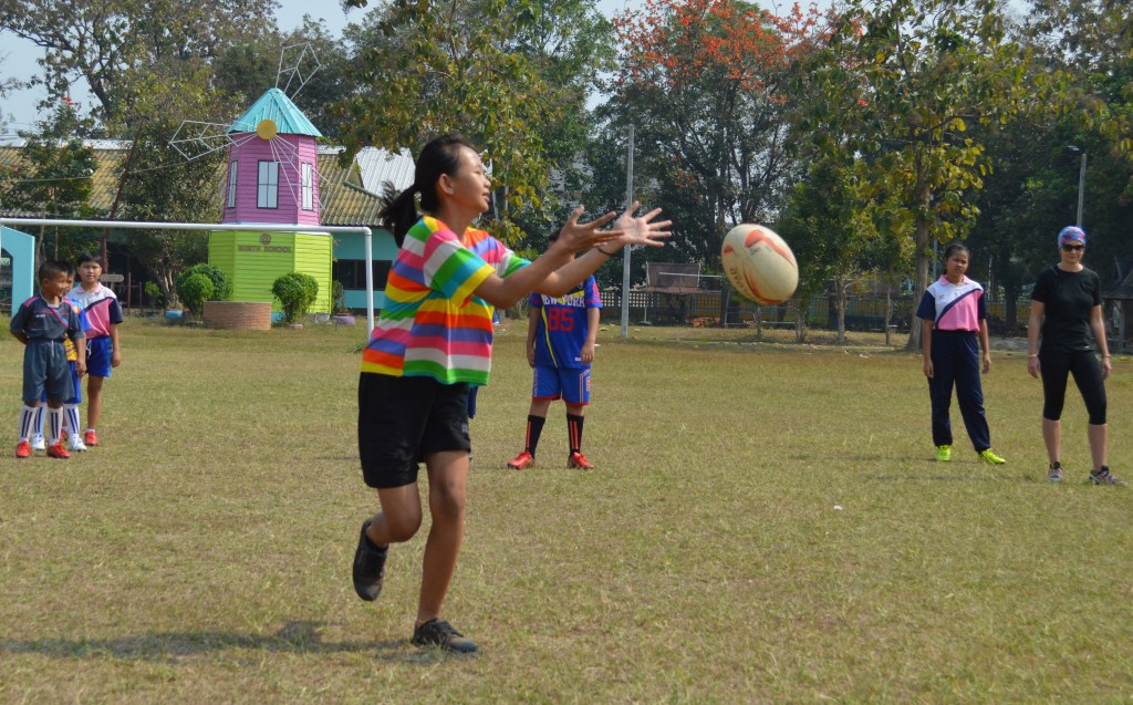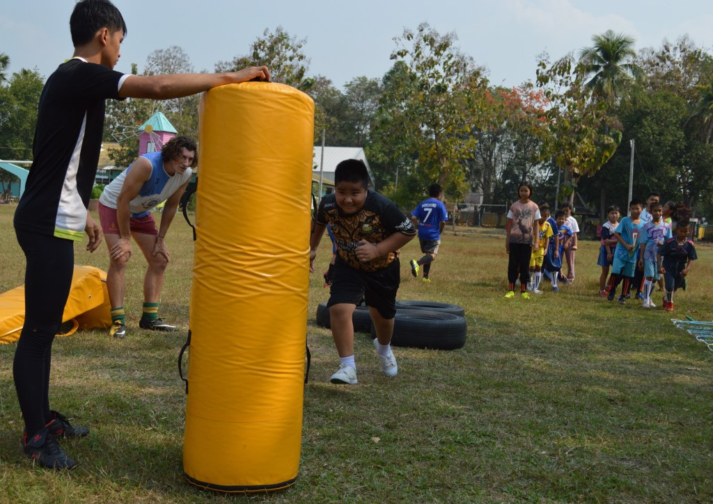 With Erin and Eileentjie who are the beginnings of the Lanna Rugby Clubs Ladies team coming down to give Tom a helping hand, along with Dtun, he had plenty of cannon fodder for the contact drills that followed.