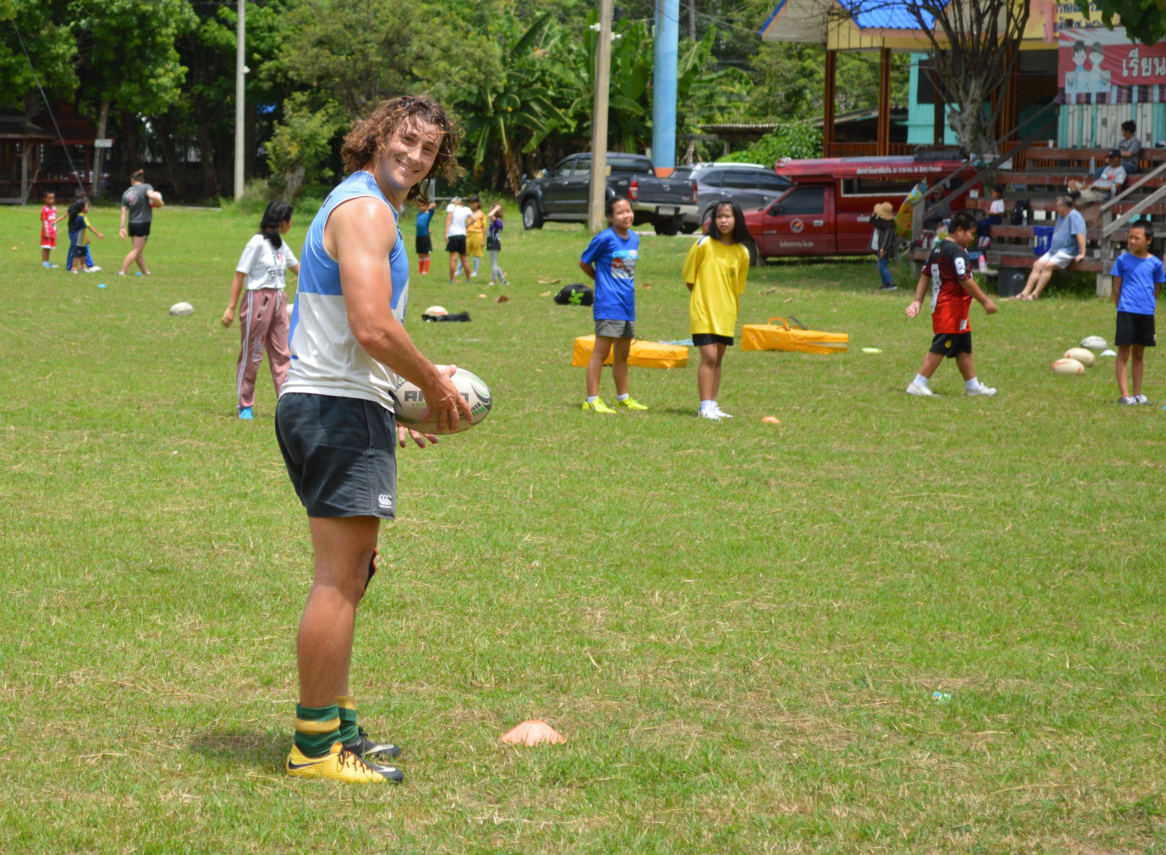 Tom was happy to be back and said “It’s incredible the sort of response we are getting from the parents and children that are coming down. The future is looking bright for rugby in Chiang Mai!”.