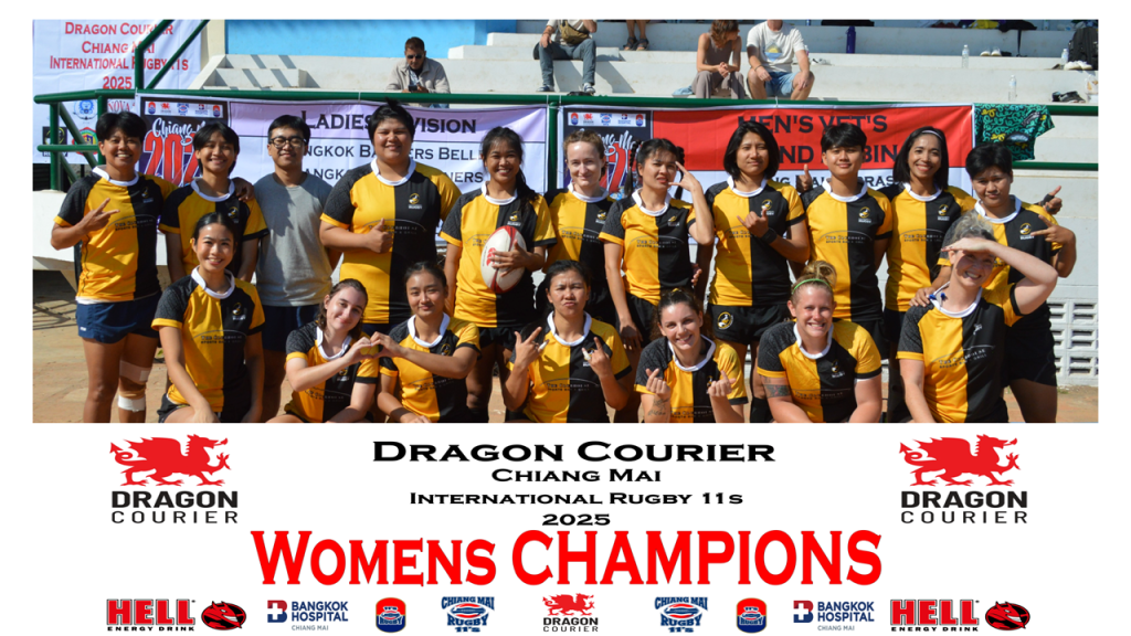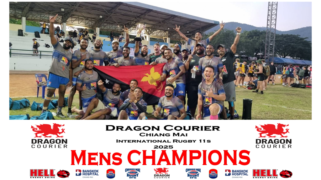 The Cup Final was a pulsating affair with the lads from Papua New Guinea dominating the Southerners in the first half racing into a 19-0 lead by half time. The second half saw the Southerners getting their hands on the ball and putting together some impressive drives. The Nova team were solid in defence, but with all the pressure coming to bear it was only a matter of team before the Southerners drove over. Game on. The Nova boys, ever the showmen, came bouncing right back and scored the try of the tournament with off loads in the tackle and serious support play, they eventually found a gap to get the final score and be crowned the 2025 Dragon Courier Chiang Mai International Rugby 11s Champions.